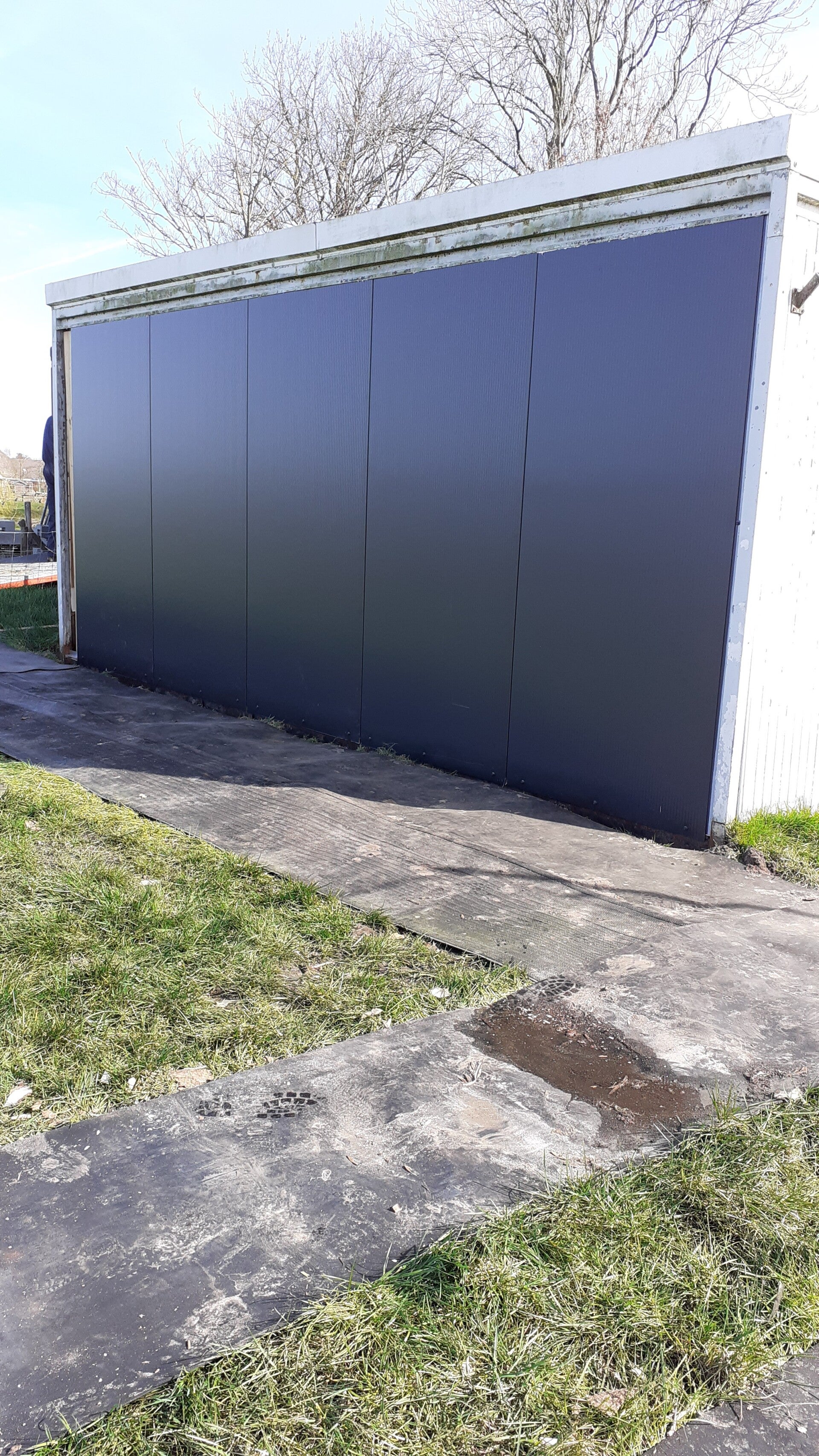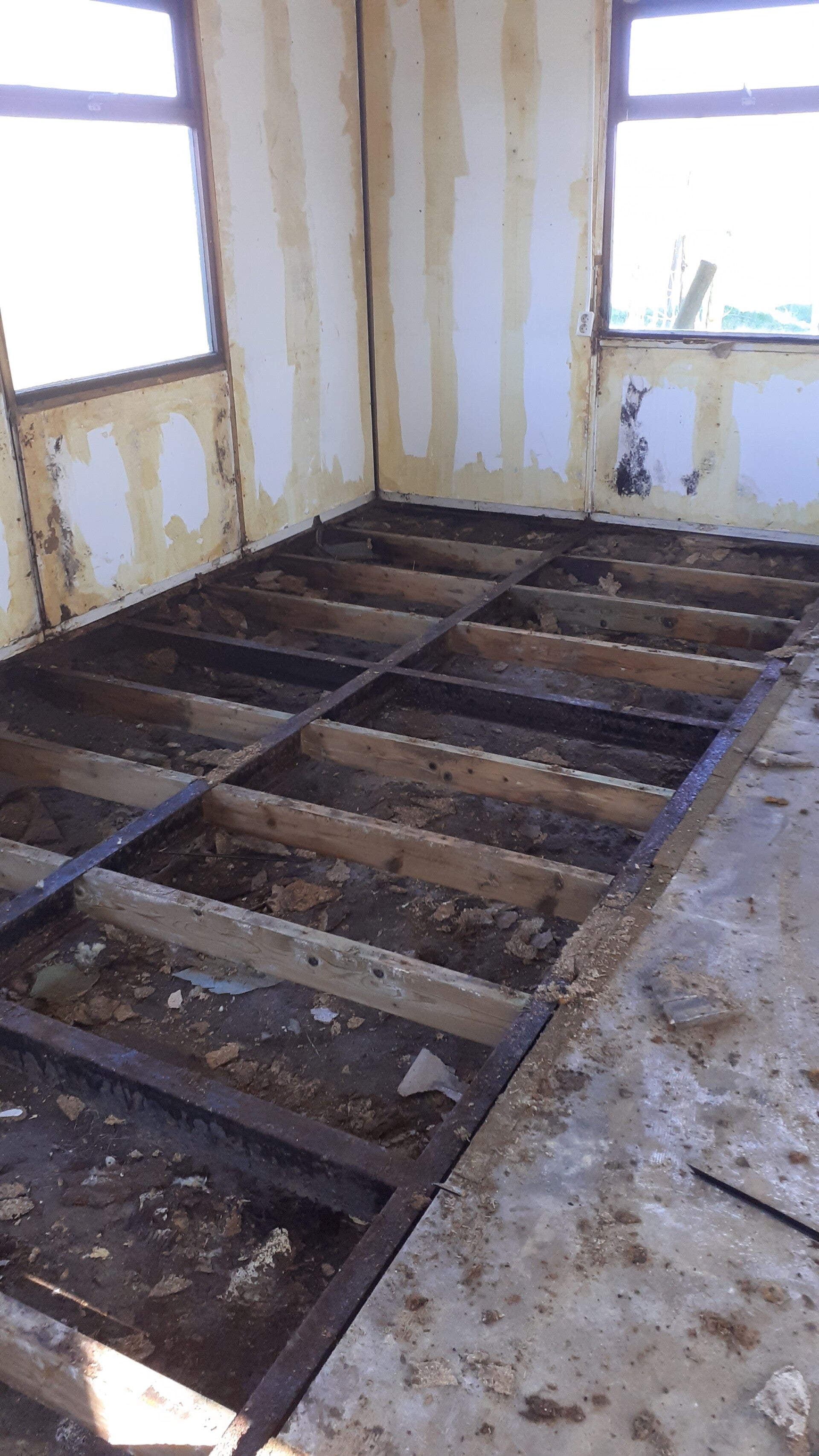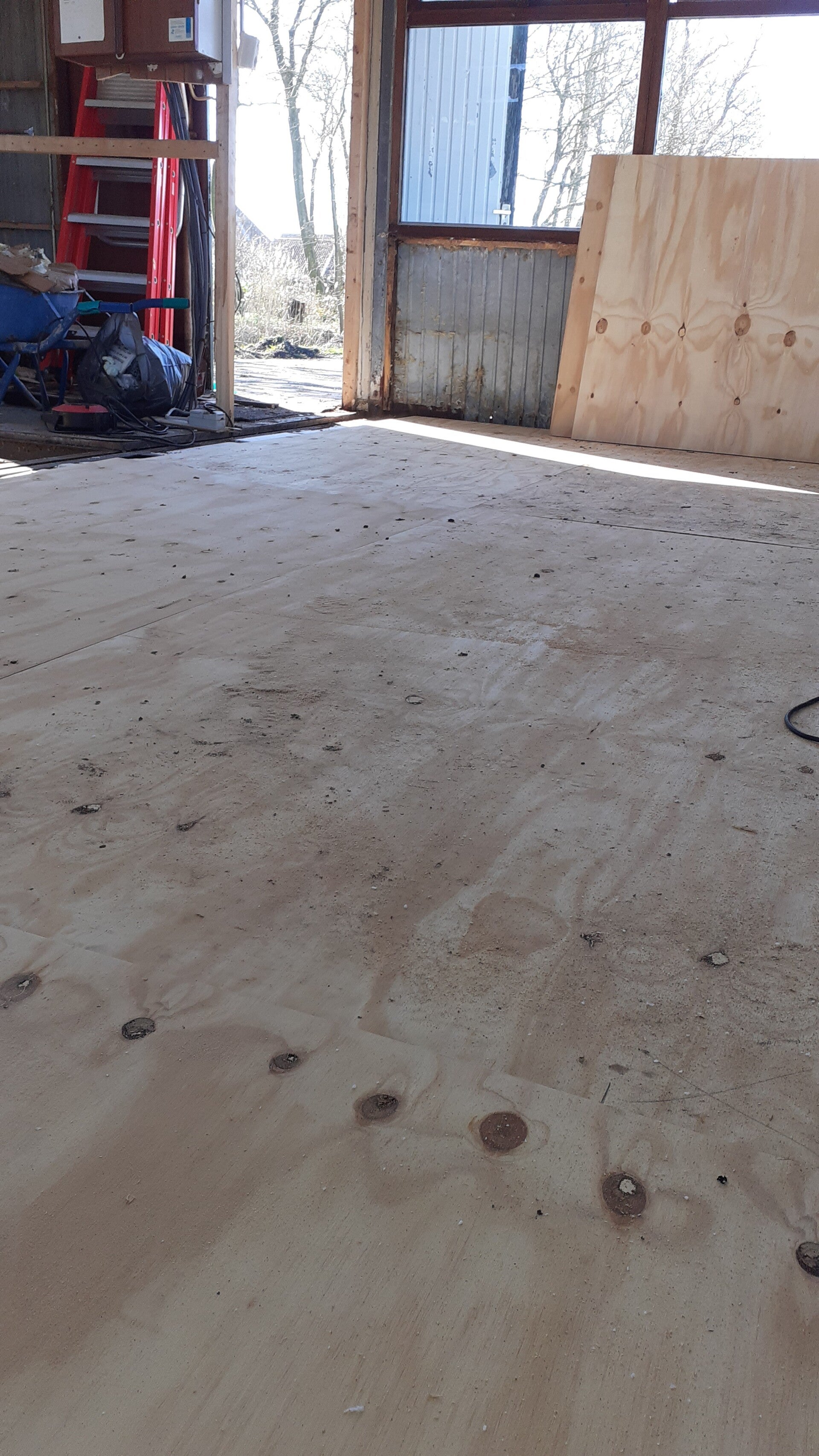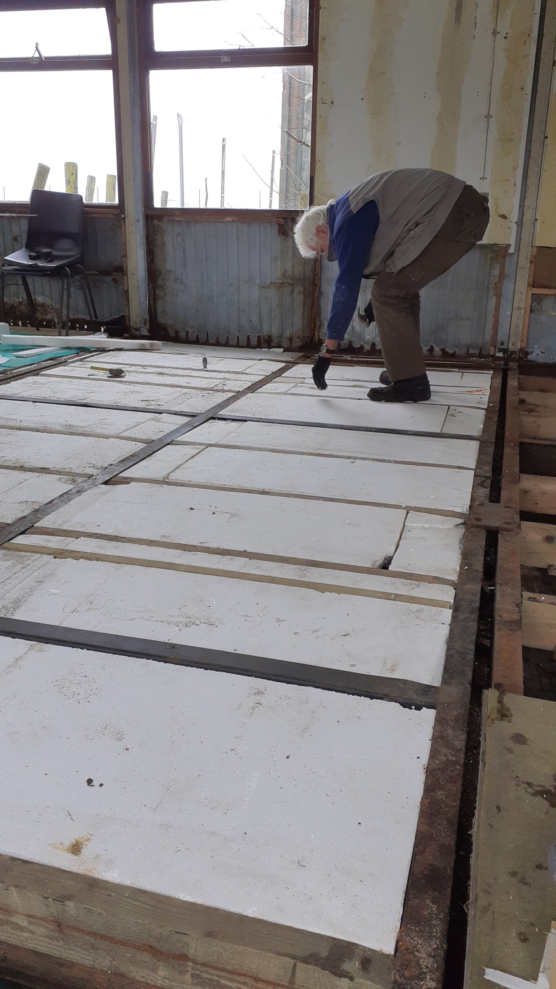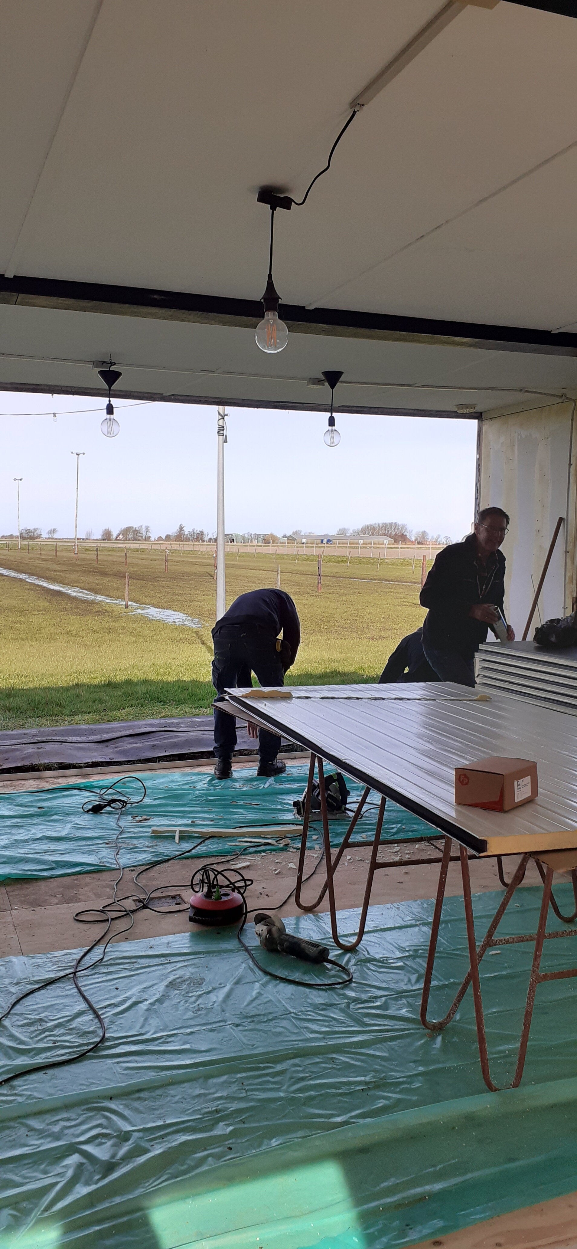 En daarna wordt de kantine geheel van nieuwe beplating, kozijnen, vloer en plavond voorzien.
