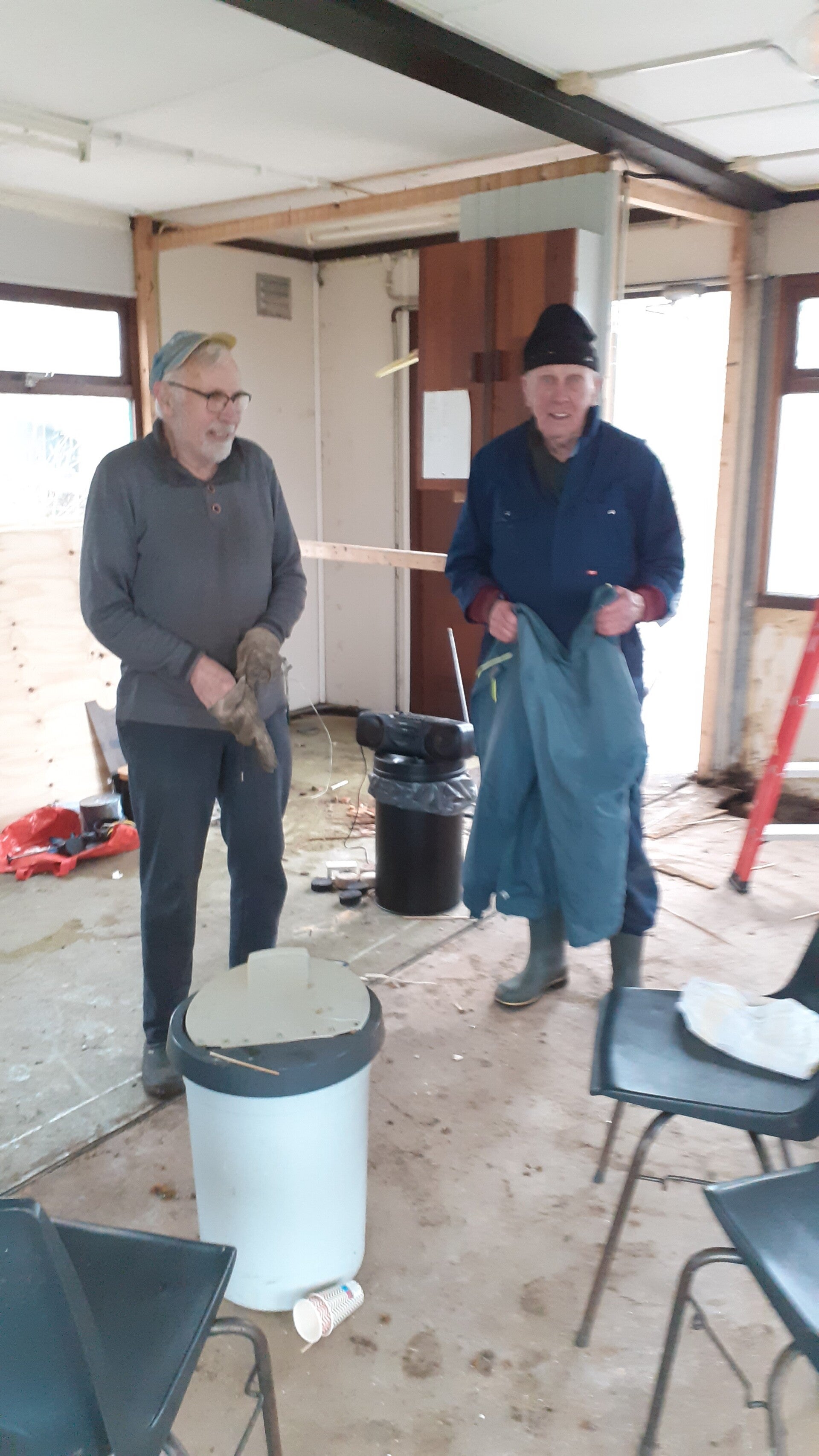 De kantine van de ijsclub wordt gerenoveerd, het is de bedoeling te beginnen met opruimen en strippen.